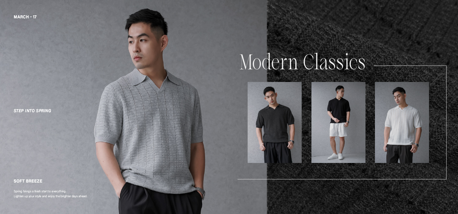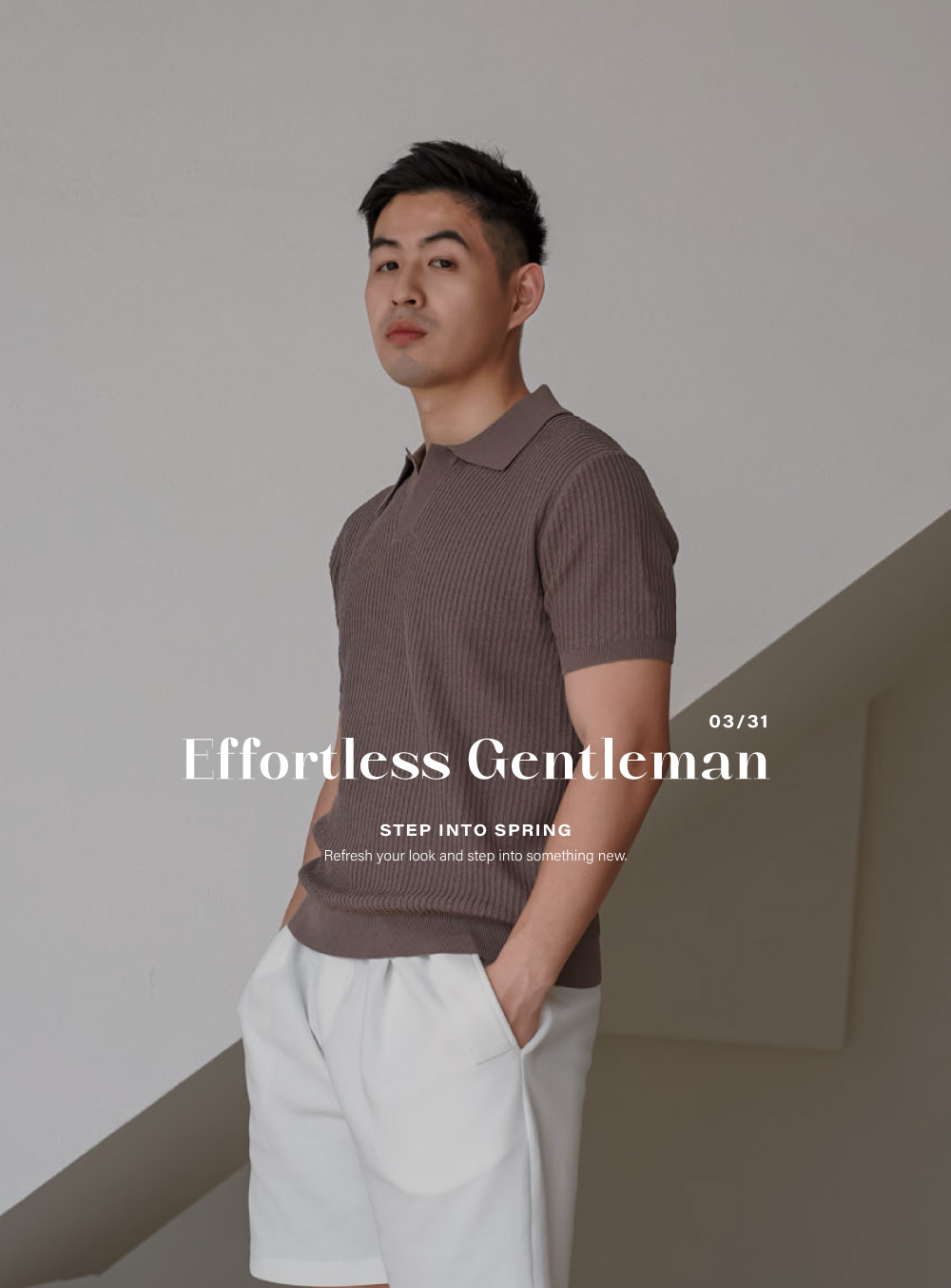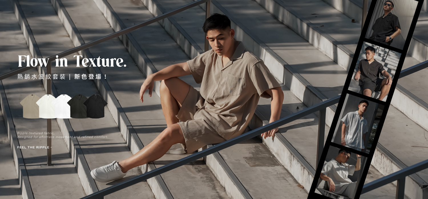 休閒翻領橫線紳士套裝(長褲)