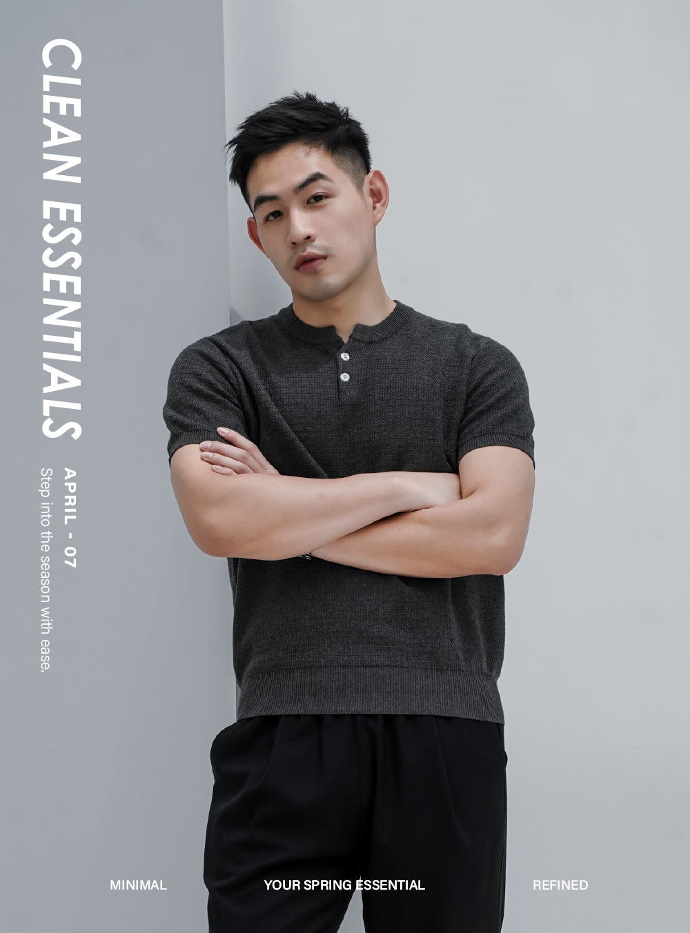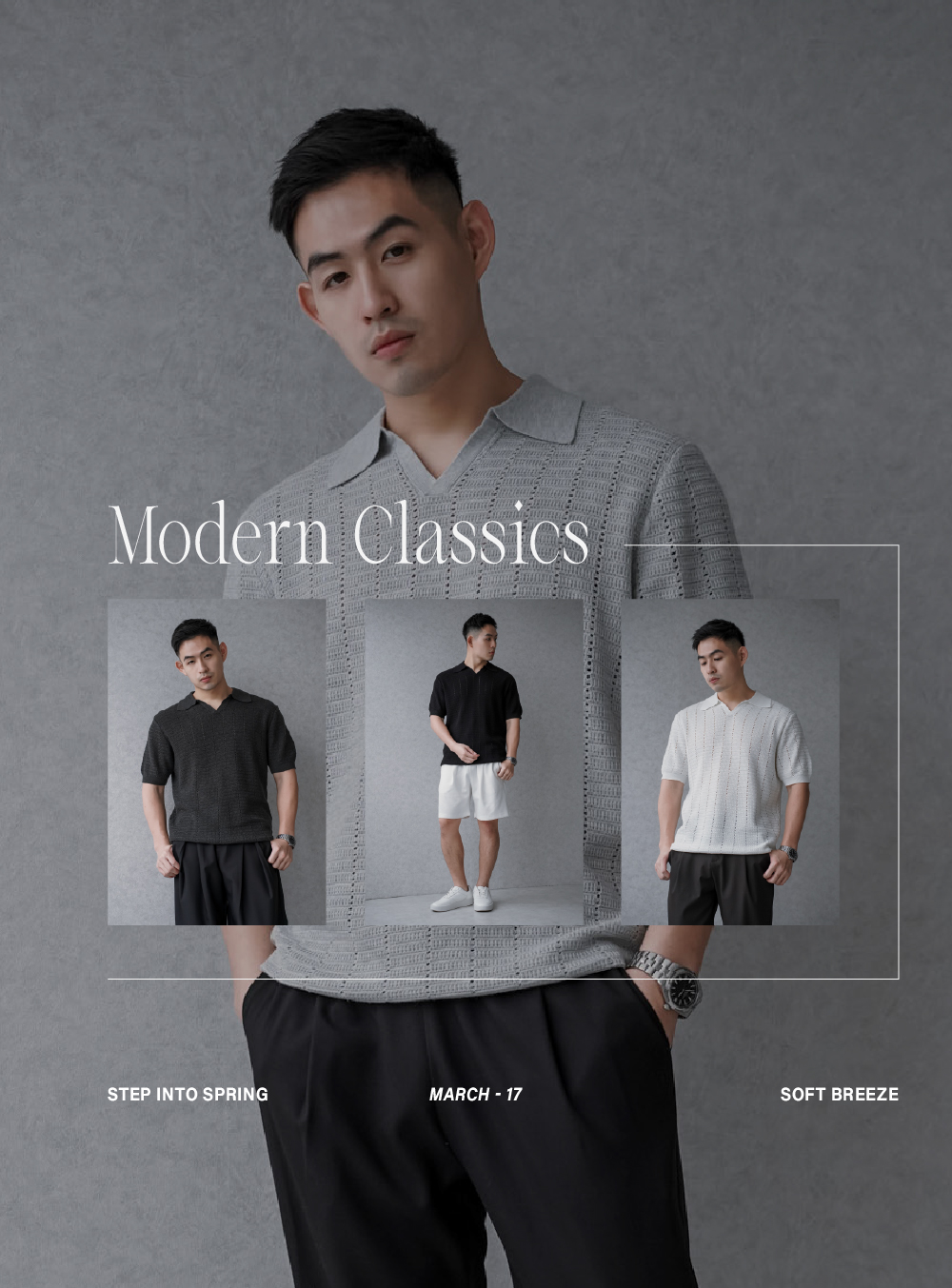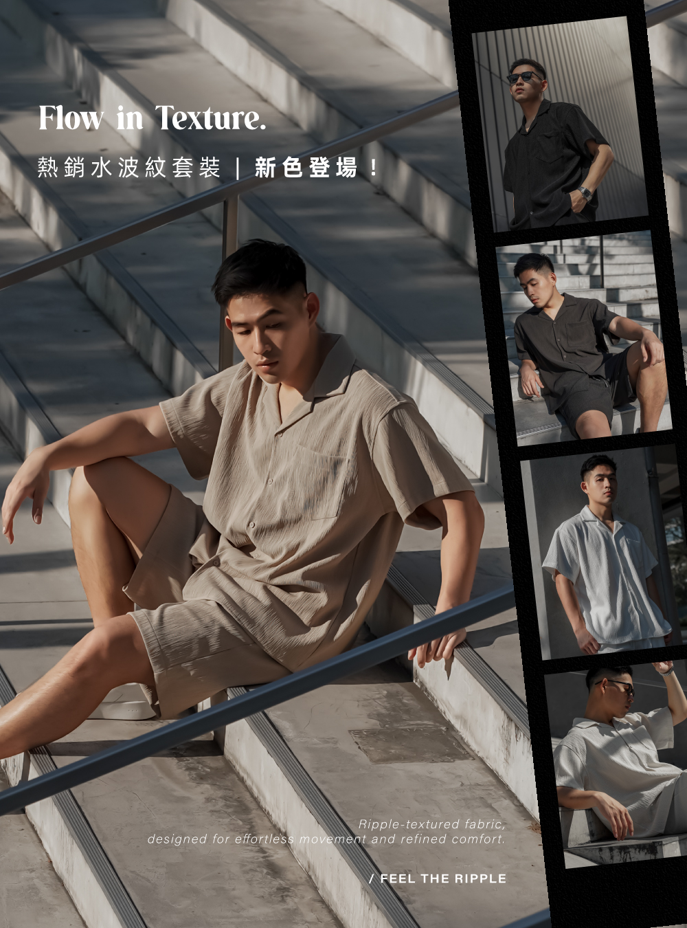 休閒翻領橫線紳士套裝(長褲)