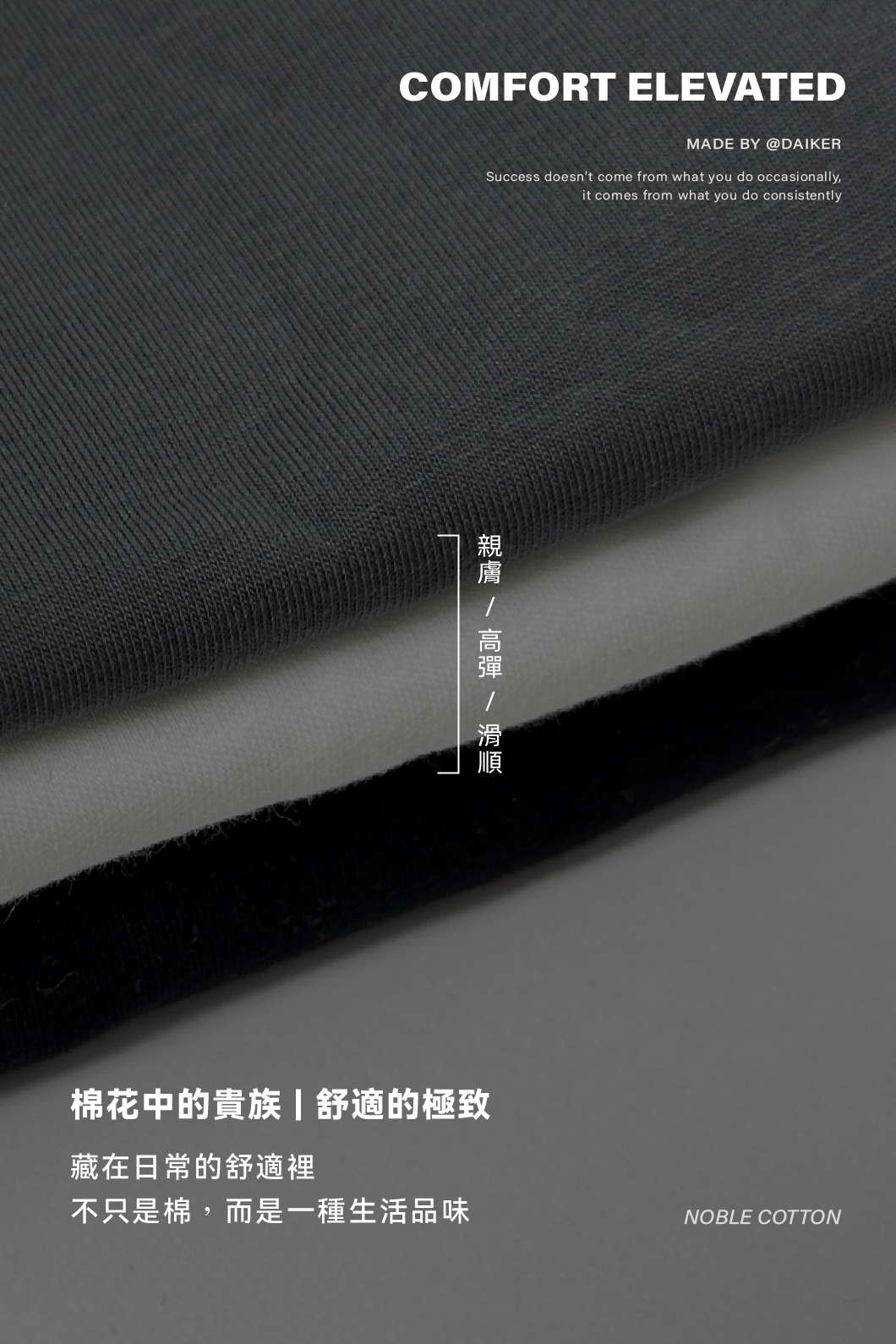 深灰色材質為 : 63.1%Pima棉 / 36.9%Sorona纖維