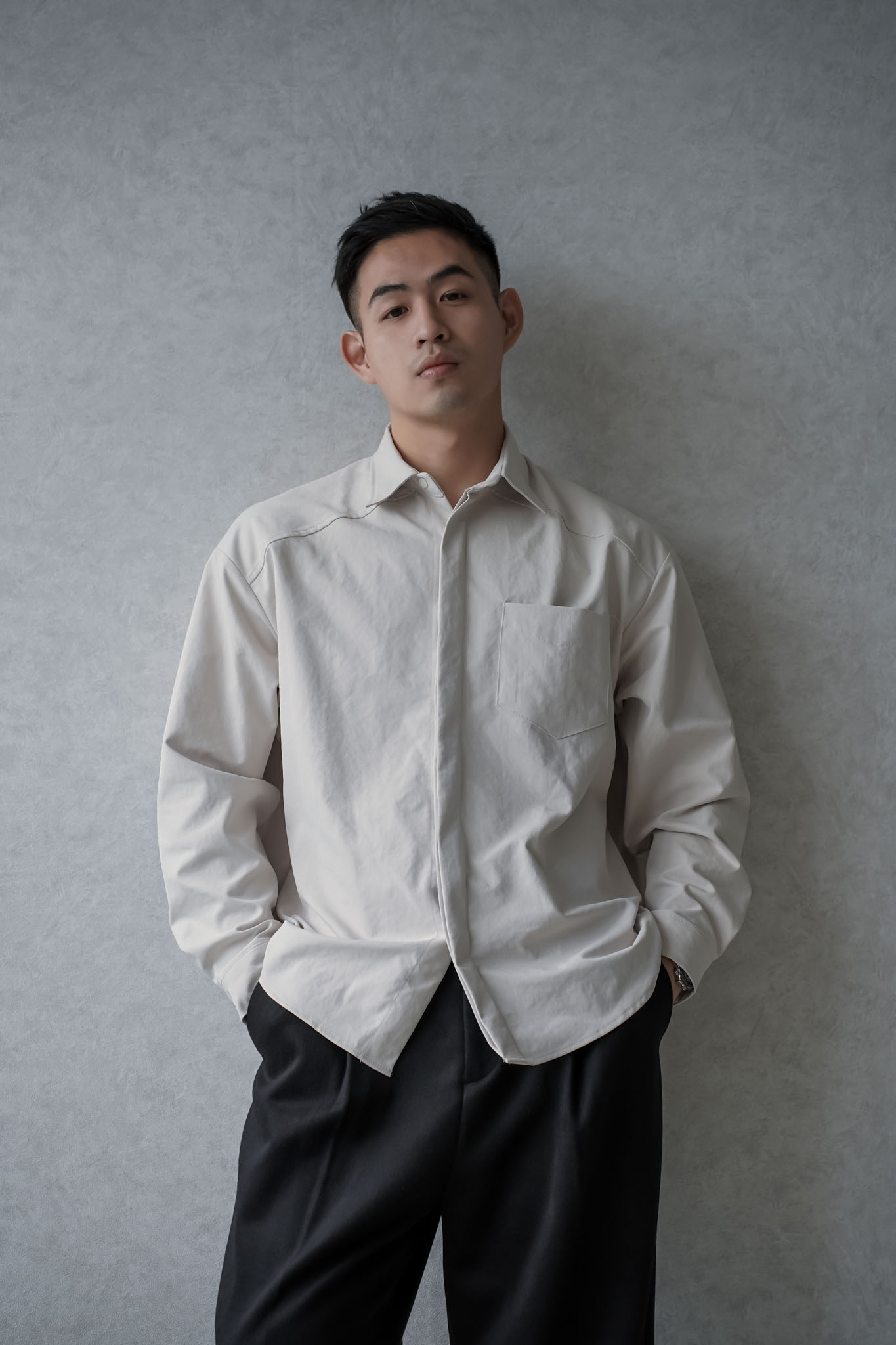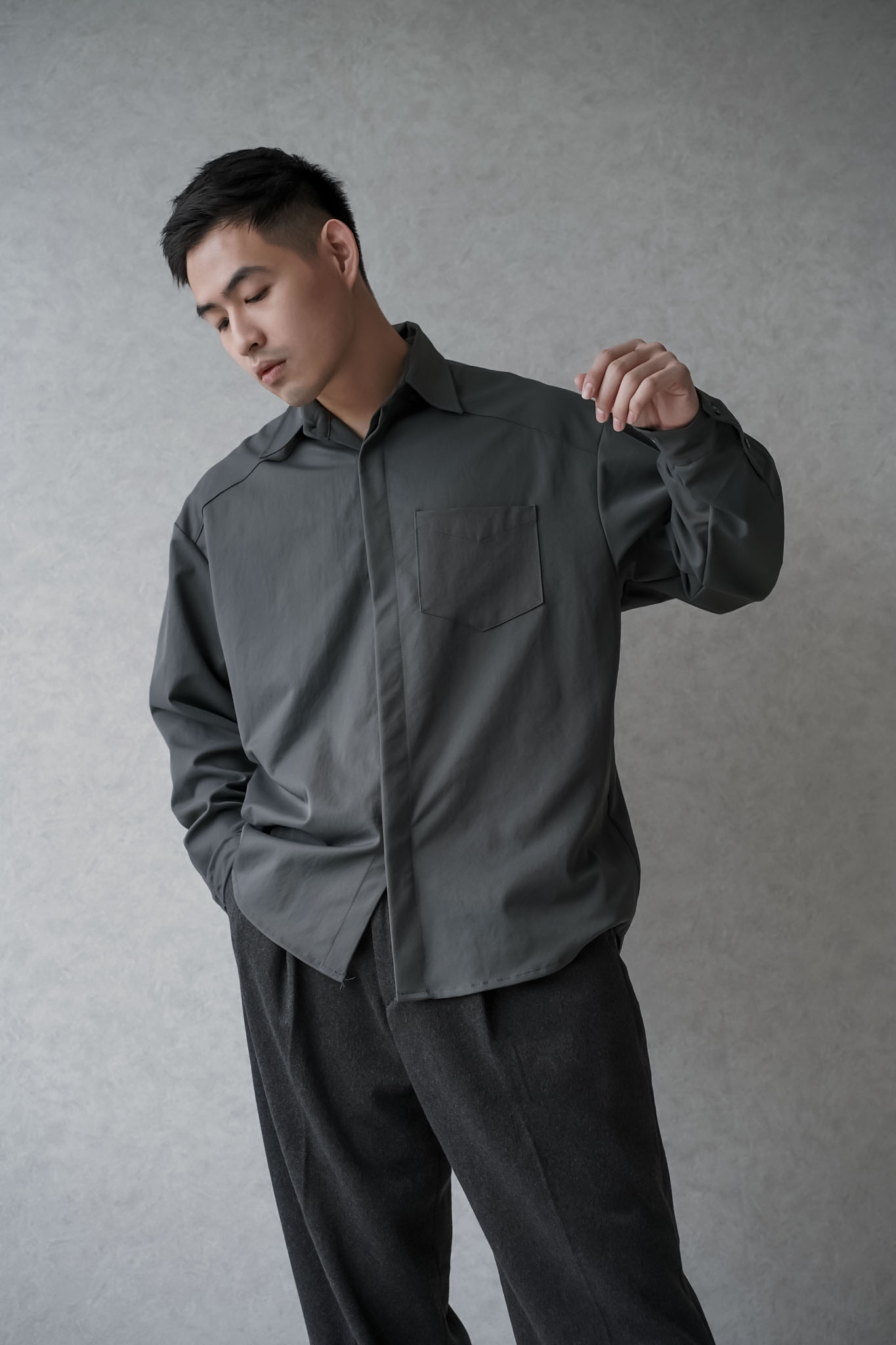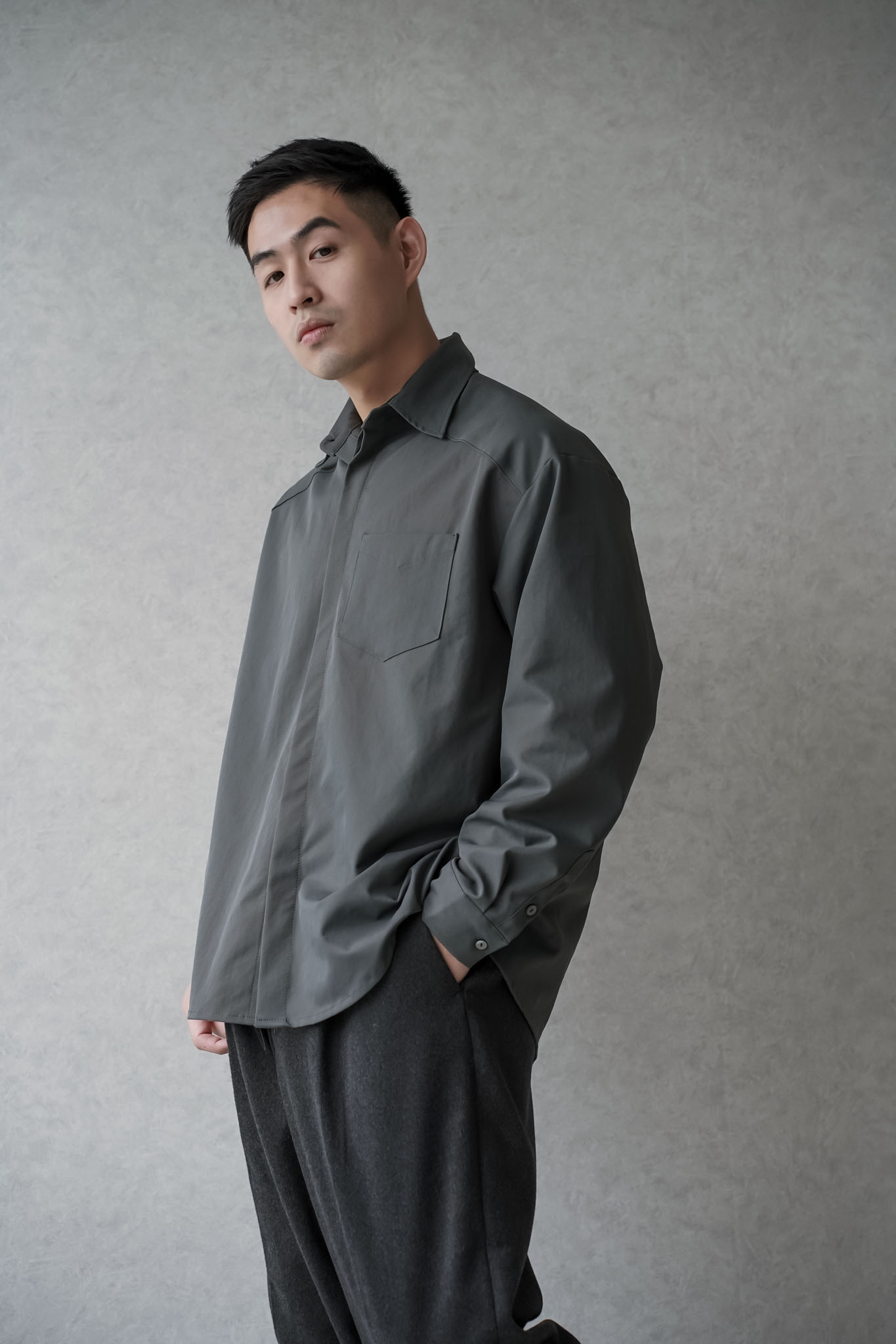 正韓滑面寬鬆口袋襯衫 0102268
