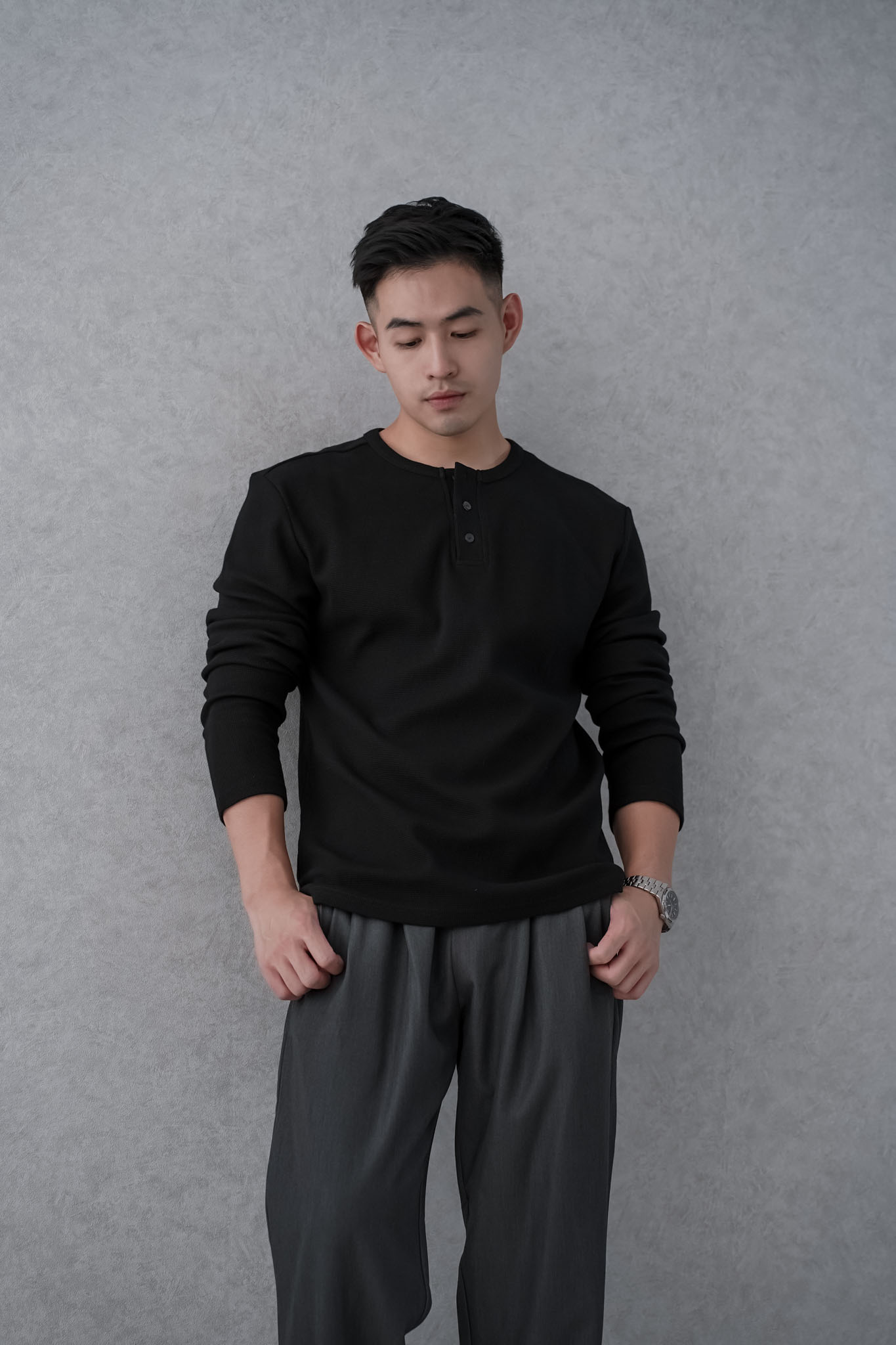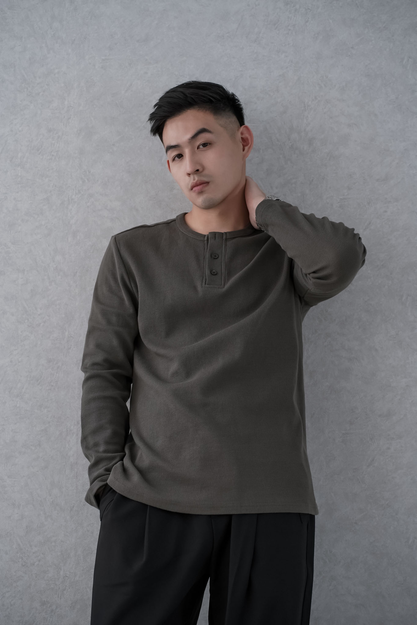 華夫格正肩休閒長袖 0102253