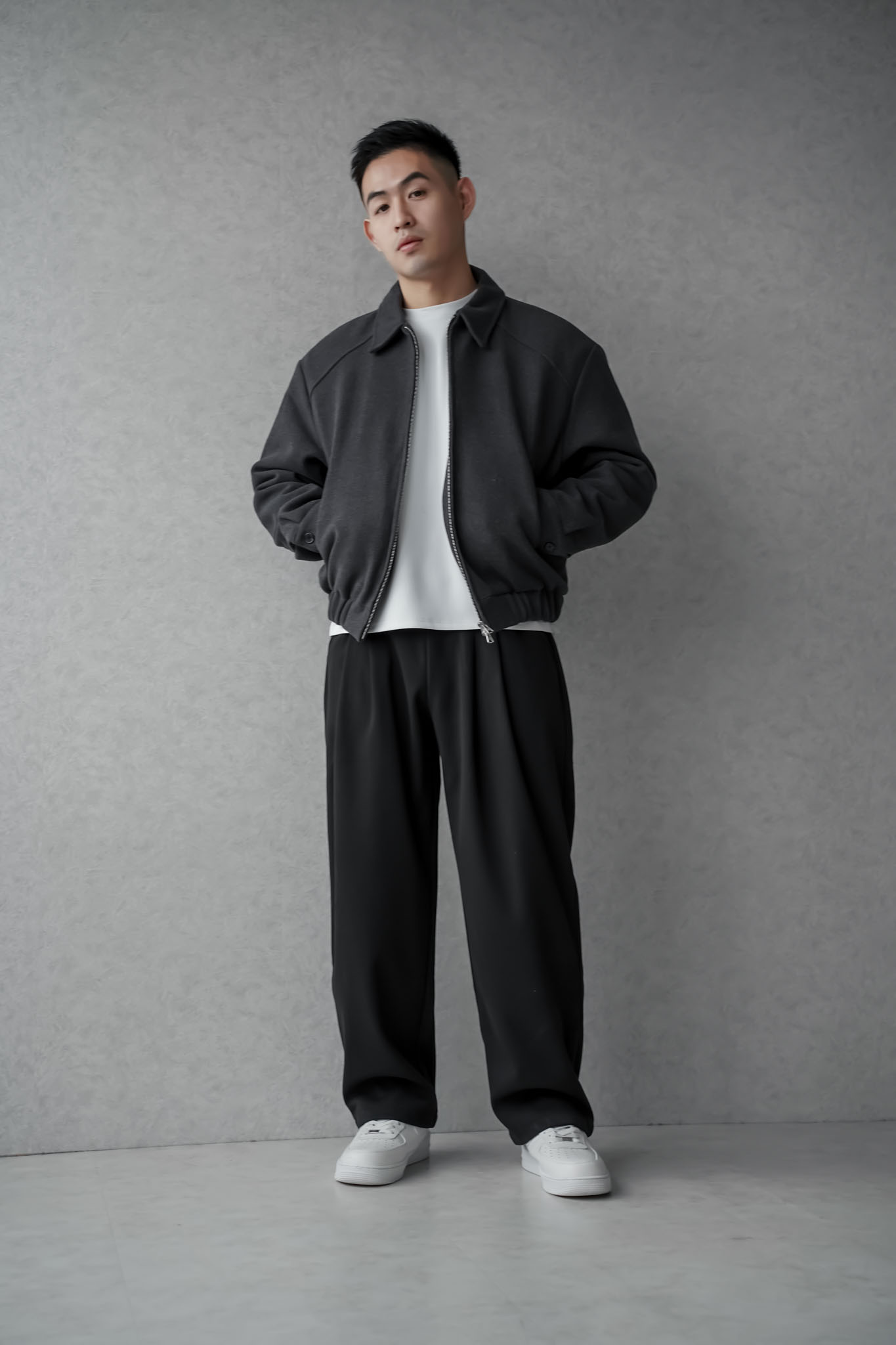 柔軟毛呢寬鬆雙打摺長褲 0202144