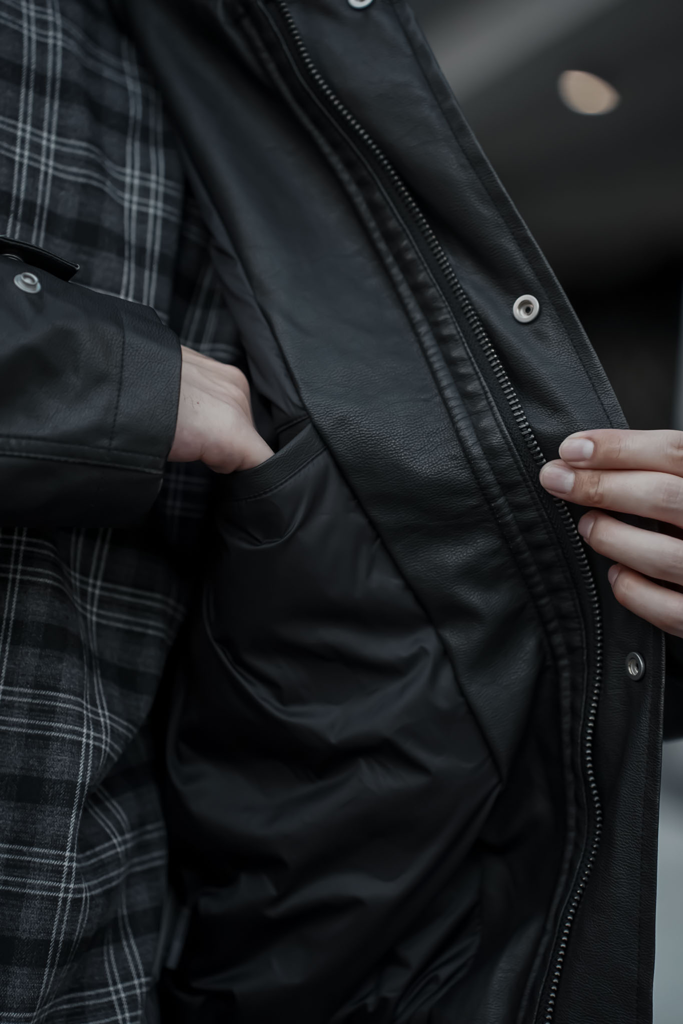 羽絨皮革短版外套 0105100